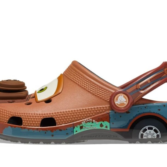 Crocs Classic Clog Mater je hravá limitovaná edice inspirovaná postavičkou Matera z filmu Auta od Disney Pixar. Ikonický design zahrnuje úsměv Matera z TPU materiálu na špičce a detail háku na patním pásku. Nechybí ani motiv motoru na špičce. Tento model spojuje pohodlí Crocs s veselým vzhledem a je ideální pro malé i velké fanoušky.