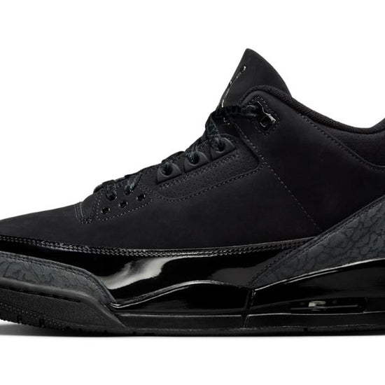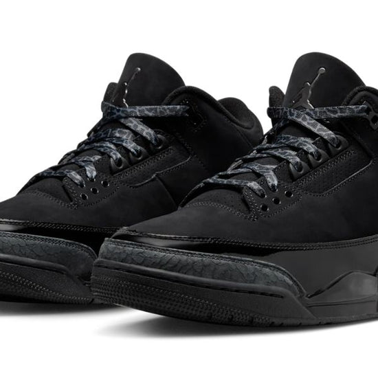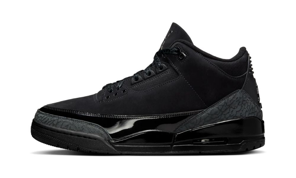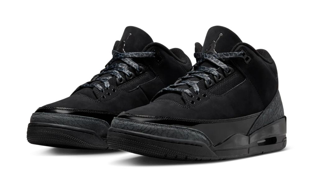 Air Jordan 3 Retro Black Cat (2025) přináší návrat ikonické siluety s temně elegantním designem. Prémiový černý nubuk doplňují elephant print panely v tmavě uhlové barvě, černý patentovaný kožený detail a decentní černo-chromové prvky. Výsledkem je čistý, ale výrazný vzhled inspirovaný přezdívkou Michaela Jordana.