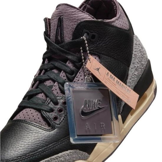 Air Jordan 3 Retro OG SP A Ma Maniére While You Were Sleeping představuje pokračování úspěšné spolupráce mezi A Ma Maniére a Jordan Brand, která se proslavila luxusním designem a detailním zpracováním. Tato verze v barvách černá, violet ore a flat pewter navazuje na úspěch první edice Jordan 3 od A Ma Maniére, která se okamžitě stala ikonou.
