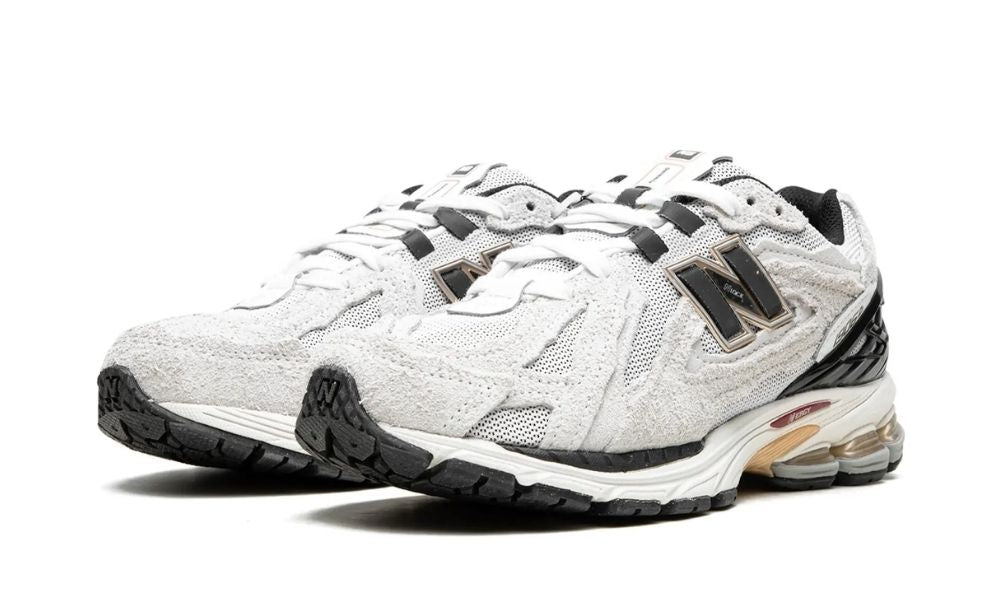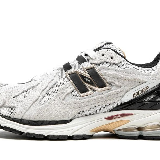 New Balance 1906D Protection Pack Reflection spojuje futuristický design s prémiovými materiály. Svršek z bílé a smetanové semiše doplňuje černé logo „N“ a plastová patní klec. O pohodlí se stará odpružení ABZORB a N-ergy s elegantními zlatými detaily. Stylový model pro fanoušky limitovaných tenisek.