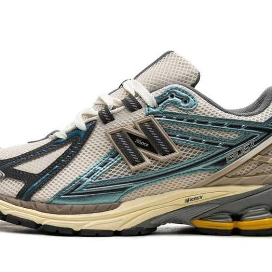 New Balance 1906R Metallic Teal New Spruce přináší retro běžecký styl s odvážným barevným provedením. Kombinace bílé síťoviny, metalických tyrkysových překryvů a hnědého loga "N" vytváří výrazný look. Tlumení ABZORB a podešev N-ergy zajišťují pohodlí a stabilitu při každém kroku.