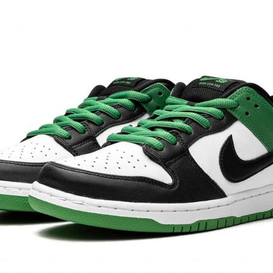 Nike SB Dunk Low Classic Green mají bílý kožený svršek, černé překryvy a Swooshes, doplněné klasickou zelenou barvou na patě, tkaničkách a brandingu na jazyku. Extra hrubý jazyk s Nike SB štítkem zajišťuje pohodlí, bílá mezipodešev poskytuje odpružení a zelená gumová podrážka skvělou trakci. Tyto kvalitní a stylové tenisky jsou ideální pro každodenní nošení i speciální příležitosti.