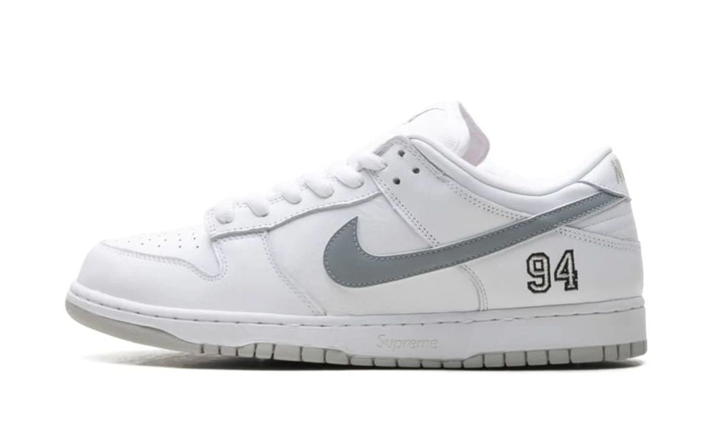 Nike SB Dunk Low Supreme 94 White Metallic Silver