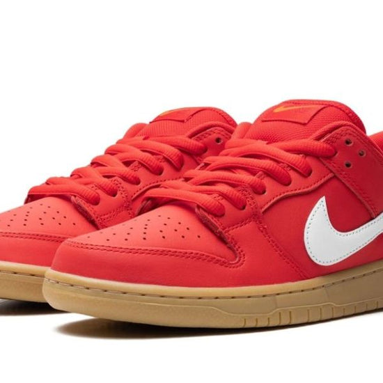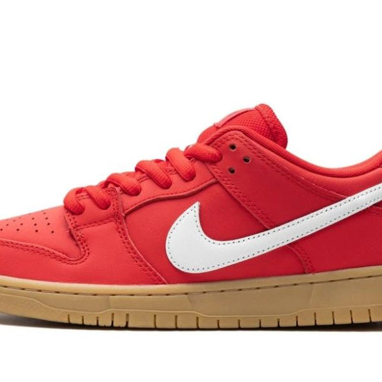 Nike SB Dunk Low University Red Gum je výrazná skate teniska v celored designu s kontrastní hnědou gumovou podrážkou.