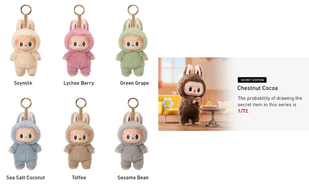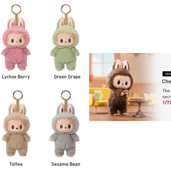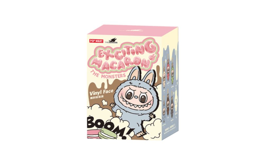 Pop Mart Labubu The Monsters Exciting Macaron Vinyl Plush Pendant – slepá krabička s jedním plyšovým přívěskem. Miniaturní Labubu plyšák v pastelových barvách (růžová, modrá, zelená, hnědá, krémová, šedá, béžová) připomíná sladké makronky. Plyš má vinylovou odolnou tvář, zlatý kovový klíčový kroužek a stužku s nápisem „THE MONSTERS“. Ideální sběratelský doplněk s roztomilým designem a stylovým balením.