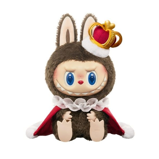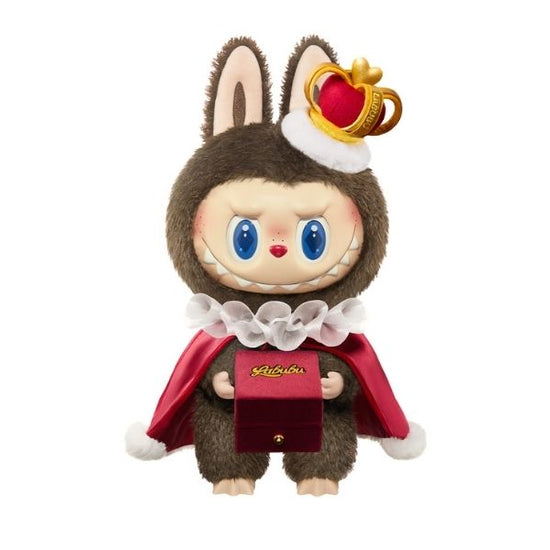 Pop Mart Labubu The Monsters Let's Checkmate Series Vinyl Plush Doll je vinylová a plyšová figurka zobrazující oblíbenou postavičku Labubu ze série The Monsters. Figurku zdobí červený královský plášť s bílými volánky a nakřivo nasazená červená a zlatá koruna, která sedí u jednoho ucha. Labubu drží červenou krabičku s nápisem „Labubu“ zlatým kurzívním písmem. Jeho tělo pokrývá hnědá srst, zatímco obličej, ruce, vnitřek uší a chodidla jsou z vinylu. Postavička má rošťácký výraz s velkýma modrýma očima a výrazným ostrým úsměvem. Tento unikátní design představuje hravý a stylový doplněk pro sběratele i fanoušky Pop Mart. Velikost figurky je 38 cm.