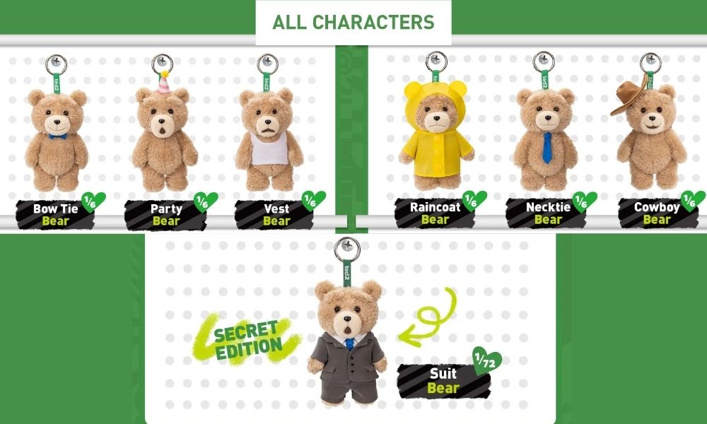 Pop Mart Ted2 Teddy Bear Action Plush Pendant Series Sealed Case (6 Blind Box) je kolekce šesti zapečetěných blind boxů s plyšovými přívěsky inspirovanými ikonickým medvídkem z filmu Ted2. Každý box skrývá akční variantu roztomilého Teddyho, díky čemuž je otevírání vždy překvapením. Ideální pro sběratele i fanoušky filmu, kteří hledají originální doplněk ke své kolekci Pop Mart figurek. Skvělý dárek i stylový kousek na batoh, klíče či poličku.