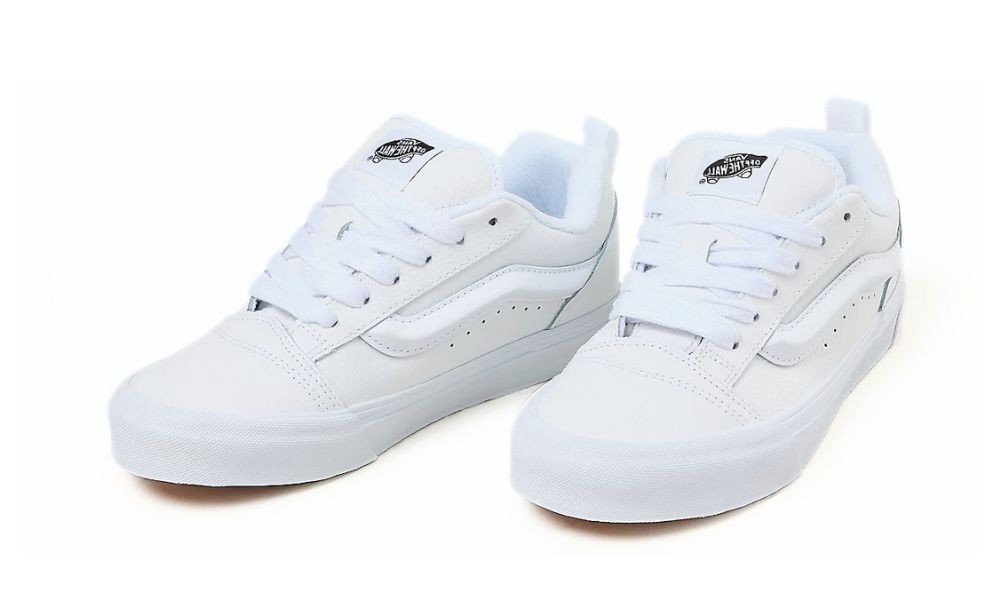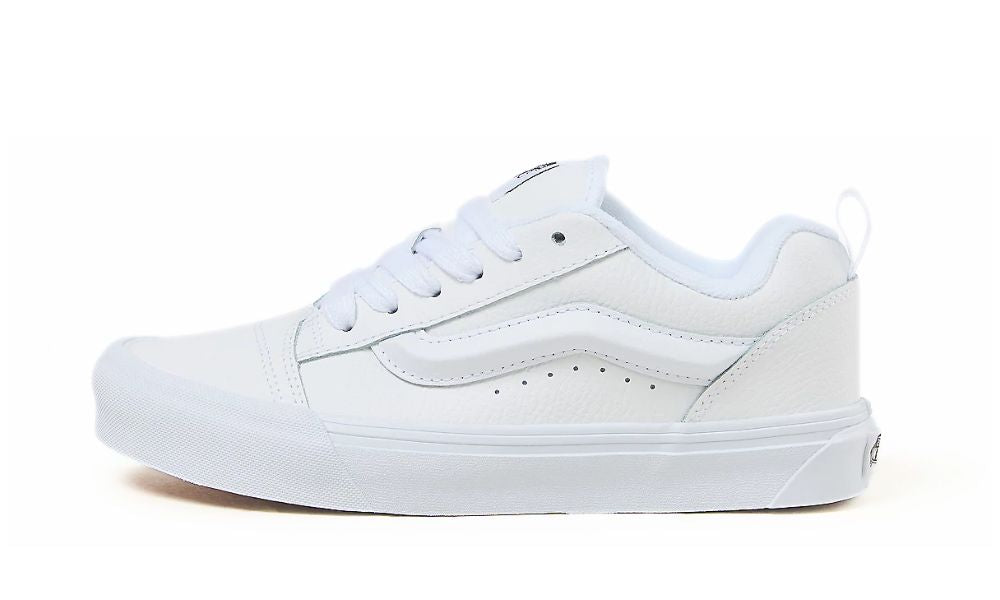 Vans Knu Skool je moderní interpretací klasického stylu 90. let, charakterizovaná nafouklým jazykem, 3D Sidestripe a velkými, robustními tkaničkami. S výrazným profilem a dramatickými detaily Knu Skool spojuje původní Old Skool s aktuálními trendy.
